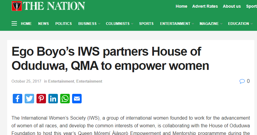 Ego Boyo’s IWS partners House of Oduduwa, QMA to empower women